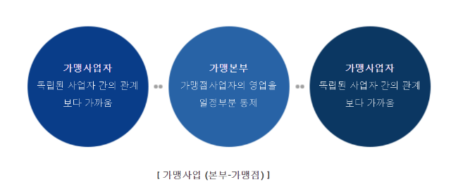 가맹사업, 흔히 우리에게 프랜차이즈(franchise)라는 용어로 알려져 있으며, 프랜차이즈는 가맹본부(franchisor)가 자신의 상품, 서비스를 보다 효과적으로 판매하기 위하여 가맹점사업자(franchisee)에게 일정한 지원, 교육을 수행하고 그 대가로 가맹금을 받는 거래관계를 의미함. 이러한 관계를 통하여 가맹본부는 부족한 자금ㆍ노동력을 공급받고, 가맹점사업자는 브랜드 이미지 및 경영 노하우를 전수받아 양자가 동반 성장할 수 있는 것임.