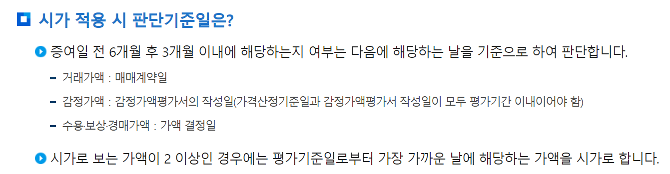 간혹, 증여세 신고기한(증여일이 속하는 달의 말일부터 3개월 이내)과 혼동해서 시가 적용 기간을 넘겨 감정평가를 의뢰하시는 경우가 있으니 특히, 유의하시기 바랍니다.